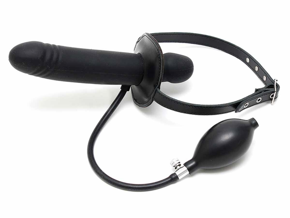 Dieser Mundknebel lässt sich mittels einer Pumpe vergrößern. Der Dildo behält dabei seine Größe.