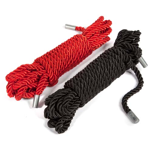 Zwei 5-Meter-seidig Bondage Seile mit Endkappen mit den Fifty Shades of Grey Logo geätzt.
